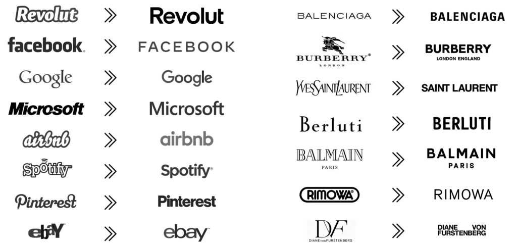 Rebrandings in the luxury sector are probably the clearest example. Brands like Burberry, Balenciaga or Yves Saint Laurent (now Saint Laurent) have simplified their logos into a very similar space: sans serif typography, black and white palettes, clean compositions, and little to no ornamentation.